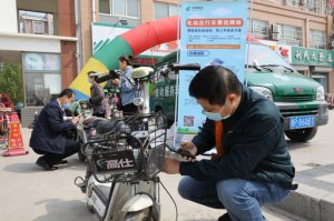 甘肅:郵儲青年志愿者為公共自行車消毒