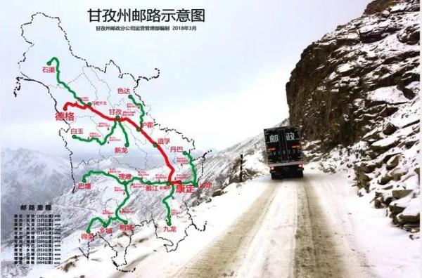 甘孜州郵路示意圖