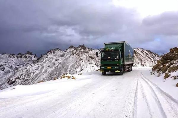 郵車行駛在雪域高原的茫茫冰雪路上