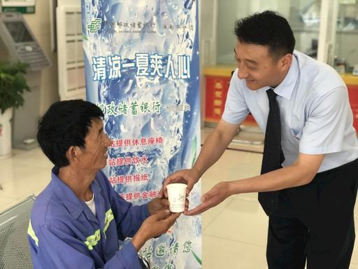 此外,在羅光明的建議下,淮南市分行以網(wǎng)點(diǎn)為依托,建立了19個(gè)“怡心小站”為戶外工作者和當(dāng)?shù)厝罕娝颓鍥?,羅光明經(jīng)常會(huì)邀請(qǐng)環(huán)衛(wèi)工人、執(zhí)勤民警、快遞員、外賣員等前往“怡心小站”休憩并送上解暑茶水?!叭缃竦洁]儲(chǔ)銀行辦業(yè)務(wù),碰到下雨天還可以免費(fèi)借傘,這里的服務(wù)太周到了?!蓖跖坑芍缘馗锌?。不僅在酷熱天氣為辛苦奔波的戶外工作者送清涼,羅光明還在網(wǎng)點(diǎn)配備了誠(chéng)信便民傘。每到下雨天,在淮南市的大街小巷上,一把把印有“中國(guó)郵政儲(chǔ)蓄銀行”的便民雨傘猶如一張張笑臉,一點(diǎn)一滴中溫暖著萬(wàn)千大眾。