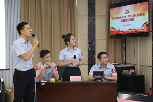 日前,郵儲(chǔ)銀行廣西壯族自治區(qū)分行機(jī)關(guān)黨委舉辦“學(xué)習(xí)黨的十九大 不忘初心跟黨走”黨建知識(shí)競(jìng)賽,該分行機(jī)關(guān)6個(gè)黨支部同臺(tái)競(jìng)技。