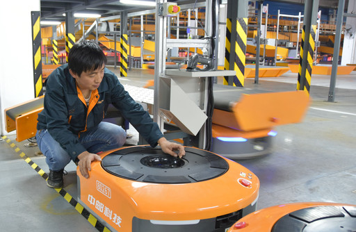 據(jù)了解,去年“雙11”,在300多臺(tái)分揀機(jī)器人的助力下,華中(武漢)陸路郵件處理中心單日最高郵件處理量達(dá)40.8萬件。為助力今年“雙11”生產(chǎn)、進(jìn)一步提高處理效率,該中心繼續(xù)增添新生力量。自10月16日起,該中心進(jìn)行增補(bǔ)機(jī)器人設(shè)備聯(lián)調(diào),11月初新增的機(jī)器人具備全功能運(yùn)行條件,將于11月11日正式運(yùn)行。圖為中郵科技項(xiàng)目組工作人員在對(duì)新增機(jī)器人設(shè)備進(jìn)行調(diào)試?! 跏Y晨 攝影報(bào)道