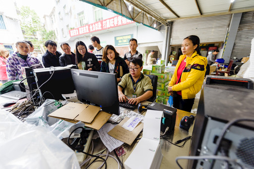 11月1日,絡(luò)繹不絕的客戶讓四川省雅安市石棉縣迎政鄉(xiāng)的“郵樂購”站點(diǎn)顯得熱鬧非凡。