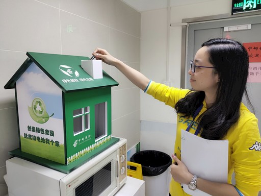圖為中郵保險(xiǎn)湖北分公司開展的“廢舊電池之家”活動(dòng)?! 跤杀2?nbsp; 攝影報(bào)道