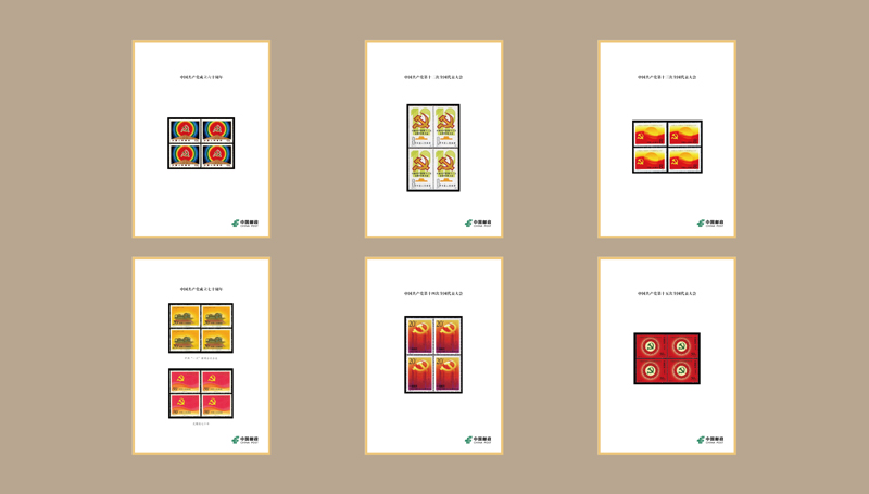 第二展柜展示的是1998年到2017年發(fā)行的建黨題材郵票。中國(guó)郵政于2017年10月18日發(fā)行《中國(guó)共產(chǎn)黨第十九次全國(guó)代表大會(huì)》紀(jì)念郵票,包括2枚郵票和1枚小型張。第1枚郵票為“不忘初心”,第2枚郵票為“繼續(xù)前進(jìn)”,郵票小型張為“筑夢(mèng)”。