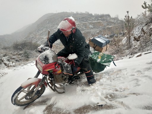 連日來,甘肅多地普降大雪,連續(xù)的風(fēng)雪惡劣天氣給正值高峰的“雙11”投遞工作帶來了嚴(yán)峻考驗,尤其是在路況很差的鄉(xiāng)村地區(qū)。但投遞員們不懼風(fēng)雪,全力以赴,準(zhǔn)確、及時地將一件件包裹送到用戶手中,至11月19日,甘肅郵政“雙11”進(jìn)口郵件妥投率為95%。圖為11月16日,慶陽市華池縣城壕鎮(zhèn)郵政所鄉(xiāng)郵員趙元瑞冒雪投遞?!  跣煜蜥?nbsp; 攝影報道