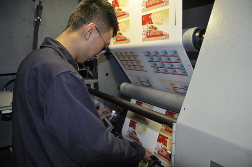 大國工匠的精神,在郵票的印制上有更直觀的體現(xiàn)。本套郵票圖稿極富時代性,在印刷效果上,需精確把握人物記憶色,以表達全國五十六個民族人民的局部細節(jié),同時還需要嚴格控制?;夷脑壤栽鰪姕\層次元素的表現(xiàn)力。一絲不茍,盡心竭力,郵票生產(chǎn)環(huán)節(jié)始終彌漫著攻城拔寨的濃厚戰(zhàn)斗氣氛。