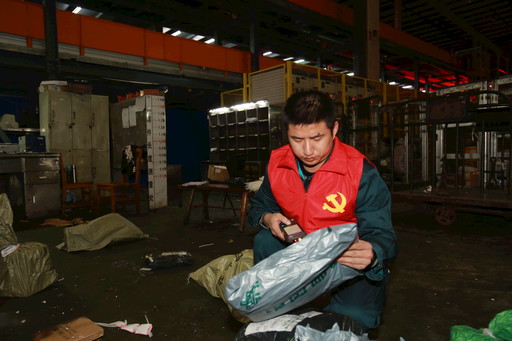 剛剛過去不久的這個“雙11”,王昊平均一天要彎腰400次以上,蹲在地上為那些破損郵件的“傷口”重新“包扎”,有時遇到水濕郵件,還要先對郵件進(jìn)行“止血”處理,再“包扎傷口”,一晚上下來,要用掉50卷透明膠帶、100個紙箱以及150條編織袋。此外,他每天還要對近400件問題郵件進(jìn)行補(bǔ)打標(biāo)簽、改地址信息等操作,使這些問題郵件得以重新獲得“身份標(biāo)簽”。