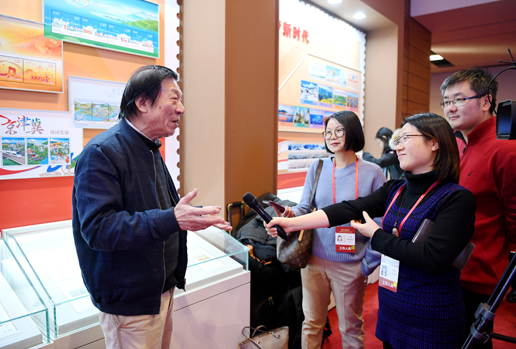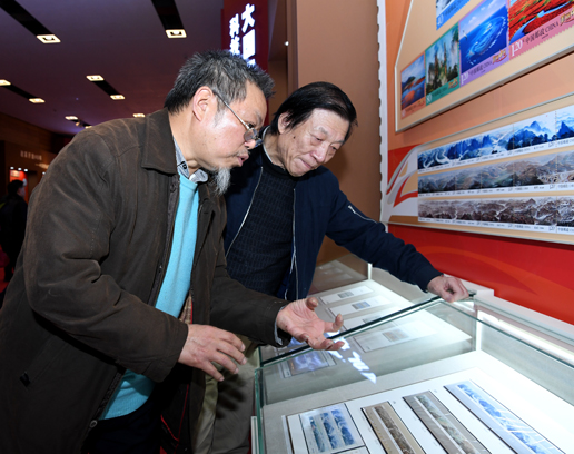 一說到郵票,兩位老者的話匣子就打開了?!班]票作為‘國家名片’,意義非常重大,但設(shè)計難度也大,一般來說,藝術(shù)家喜歡揮灑,喜歡在創(chuàng)作中發(fā)揮自己的想象力,但恰恰郵票設(shè)計具有嚴(yán)謹(jǐn)?shù)目茖W(xué)性?!痹S仁龍介紹,在《長城》郵票中,地理方位一點都不能馬虎,長城的敵樓上有幾個射箭孔都要有出處、有講究;此外,郵票設(shè)計還要進(jìn)行嚴(yán)謹(jǐn)?shù)臍v史考證,長城綿延一萬多公里,經(jīng)過那么多省、市,沿途取景就需要仔細(xì)推敲,聽取專家意見,最終還要畫成一個藝術(shù)作品?!霸谠O(shè)計郵票時要充分體現(xiàn)藝術(shù)巧妙的融合性,要突破時空,令人有身臨其境之感,這又是一個難點。”時隔兩年,許仁龍回憶起郵票創(chuàng)作過程還是感受頗多,“長城是改革開放的一種精神象征,中國郵政將它繪制成郵票長卷是一種突破?,F(xiàn)在,這套郵票長卷在‘偉大的變革’展覽中展出,我深感榮耀和自豪,在此也要感謝改革開放給我們藝術(shù)創(chuàng)作帶來的新氣象。”