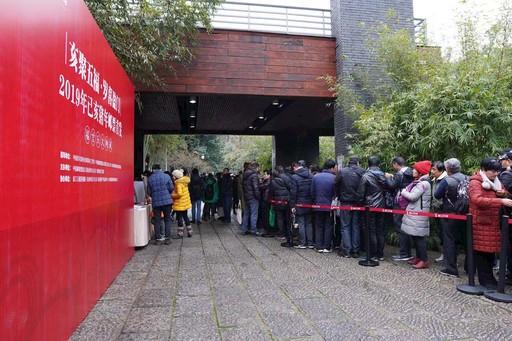1月5日,浙江杭州煙雨濛濛,廣大集郵愛好者在位于西子湖畔的韓美林藝術(shù)館前排起了長隊(圖)。當天,韓美林藝術(shù)館舉辦了《己亥年》郵票首發(fā)式,“‘豬’事大吉”己亥年生肖畫展開展,集中展示韓美林先生融合傳統(tǒng)水墨和現(xiàn)代水彩畫效果于一體的作品。