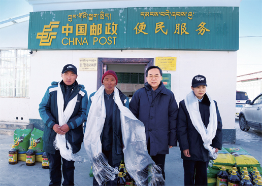 冬日的西藏,天寒地凍,氧氣稀薄,令人望而卻步。帶著集團(tuán)公司黨組對“雪域高原”普遍服務(wù)工作、對邊疆地區(qū)員工生產(chǎn)生活的牽掛,2018年12月26日至29日,集團(tuán)公司董事長、黨組書記劉愛力,副總經(jīng)理張榮林一行趕赴西藏自治區(qū)山南市、浪卡子縣郵政分公司及所轄普瑪江塘鄉(xiāng)郵政所和拉薩郵區(qū)中心局,通過實(shí)地查看、與員工交流座談,調(diào)研了解郵政普遍服務(wù)的實(shí)際情況和困難,向長年堅(jiān)守崗位的基層郵政員工送上最深切的關(guān)愛。