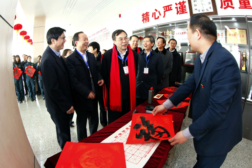 劉愛(ài)力觀看北京機(jī)要通信局員工書(shū)寫(xiě)“?!弊郑瑸榇蠹宜蜕闲麓鹤8?/p>