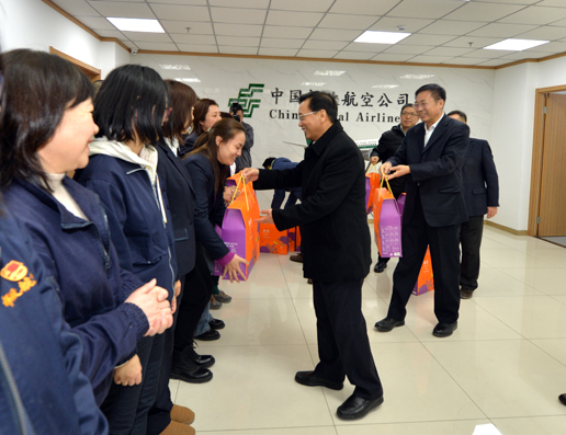 李雄向郵航員工們送上慰問品