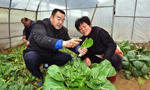王龍民(左一)從小生長(zhǎng)在農(nóng)村,他在農(nóng)作物生長(zhǎng)方面算得上是一位“土專家”,菜農(nóng)們遇到問(wèn)題,總愛(ài)找他尋求解決方法。