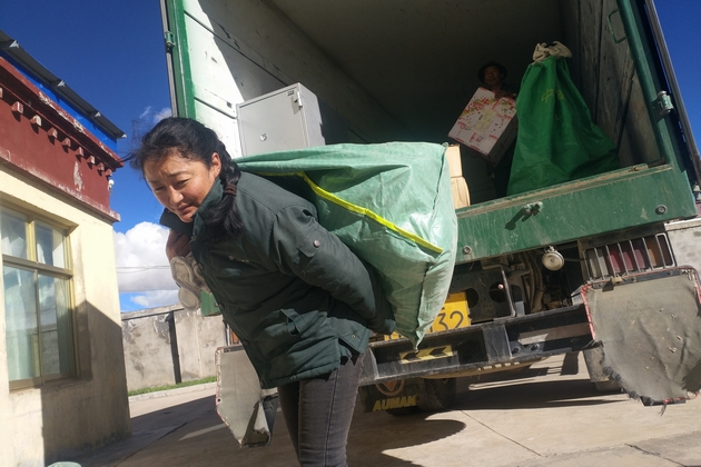 北措鄉(xiāng)二村的次仁卓嘎是益西卓嘎在投遞途中認(rèn)識(shí)的孤寡老人。有一次,雙湖縣下起了數(shù)十年一遇的大雪,當(dāng)時(shí)還在休假中的益西卓嘎,想到老人不便外出,便不顧外面齊膝的大雪徒步20公里來到老人家里,送去了足夠老人吃一周的食物。老人沒有手機(jī),牧民居住地點(diǎn)又時(shí)常變換,每次她去看望老人,總要花上大半天時(shí)間,這些益西卓嘎從沒和老人說過。
