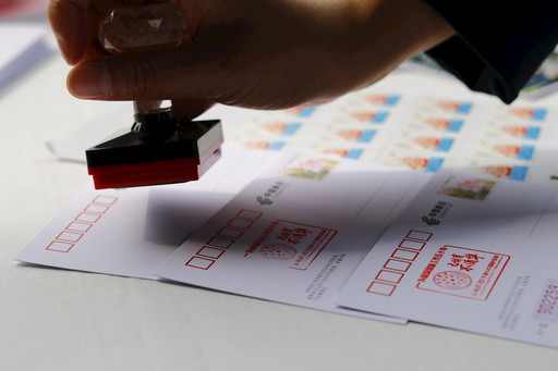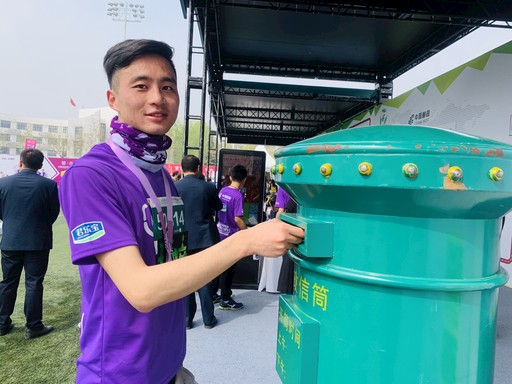 選手完賽后將參賽紀(jì)念明信片投進(jìn)郵筒。