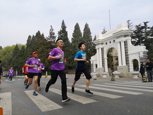參賽選手跑過清華大學(xué)標(biāo)志性建筑——二校門。