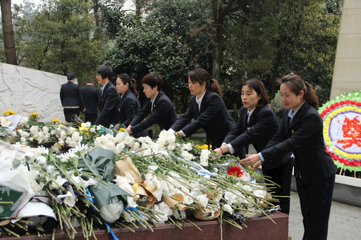 安吉縣支行的黨員們向革命先烈獻花。