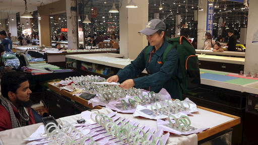 在中國重要的玉石集散中心——云南省德宏傣族景頗族自治州瑞麗市,來自四面八方的人們在各大玉石交易市場淘寶。市場里,有一抹流動(dòng)的“郵政綠”,始終如一地為玉石珠寶寄遞保駕護(hù)航。