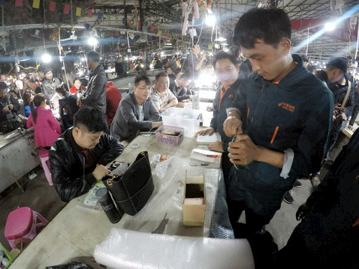 晚上10點(diǎn),記者走進(jìn)瑞麗市的姐告玉城夜市,這里燈火通明、人聲鼎沸,2500多個(gè)攤位前擠滿了全國各地慕名而來的玉石交易商、文玩收藏家及游客。不同店鋪、攤位前,主播們對著手機(jī)、打著手電,正忙碌地展示貨品,旁邊簇?fù)碇却鲐浀纳碳遥芏喽际蔷挼榧倘?。直播中如有客戶線上下單,主播便快速將手中展示的貨品裝袋,用記號筆標(biāo)注,再進(jìn)行下一件貨品展示,最后,通過快遞將銷售的貨品寄出。