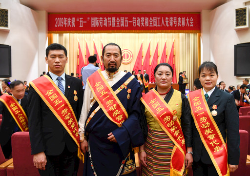 2019年4月23日,慶?!拔逡弧眹H勞動節(jié)暨全國五一勞動獎和全國工人先鋒號表彰大會在京召開。郵政系統(tǒng)7人獲全國五一勞動獎?wù)隆?單位獲全國工人先鋒號,其美多吉、柴閃閃、益西卓嘎、韋艷梅作為代表,受邀進京參加表彰大會。