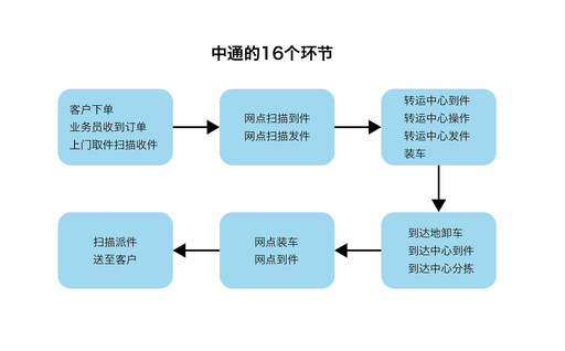 圖表1:中通的16個環(huán)節(jié)