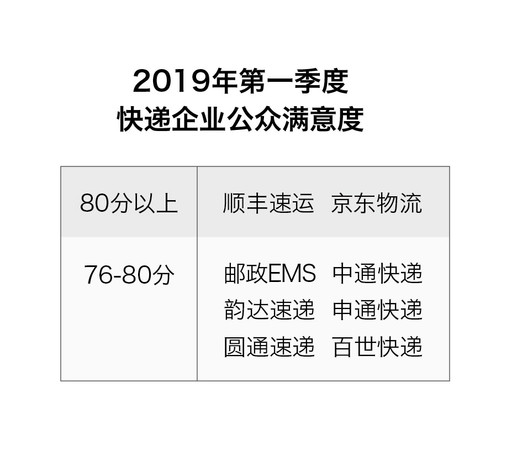 圖表3:2019年第一季度快遞企業(yè)公眾滿意度