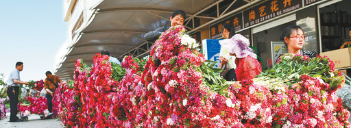 “鮮花論斤賣,賣花像賣菜”,描繪的是云南昆明的斗南花市,這是亞洲最大、世界第二的花卉交易市場,被譽為“亞洲花都”,上市鮮花100個大類、1600多個小品種,每天有1000-1200噸鮮切花從這里通過航空、鐵路、公路運往全國80多個城市,遠銷50多個國家和地區(qū),是全國花卉市場的“風向標”和花卉價格的“晴雨表”。