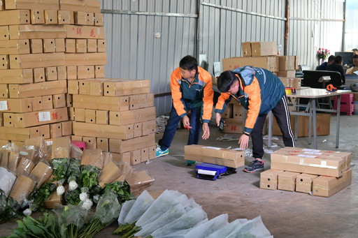 客戶包裝好的鮮花郵件,郵政快遞小哥直接上門收件。