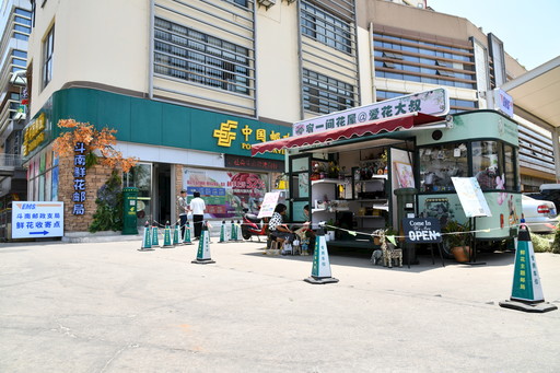 主題郵局的網(wǎng)紅打call地—“宥一間花屋@愛花大叔”流動花車。