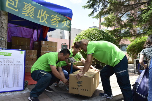 6月中旬,吉林省郵政分公司啟動畢業(yè)季校園包裹項目,選派專職攬收員進駐校園,為畢業(yè)生提供免費上門取件、包裝等服務(wù)。該分公司還利用線上掃碼自助下單平臺,提高電子面單使用率,同時宣傳郵政包裝箱綠色、環(huán)保、可循環(huán)性,助力綠色郵政建設(shè)。圖為郵政工作人員在吉林大學校園內(nèi)設(shè)點收寄畢業(yè)生包裹 □吉林記者 郭慧婷 通訊員 孫作偉 攝影報道