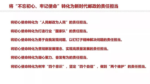 將“不忘初心、牢記使命”轉(zhuǎn)化為新時(shí)代郵政的責(zé)任擔(dān)當(dāng)