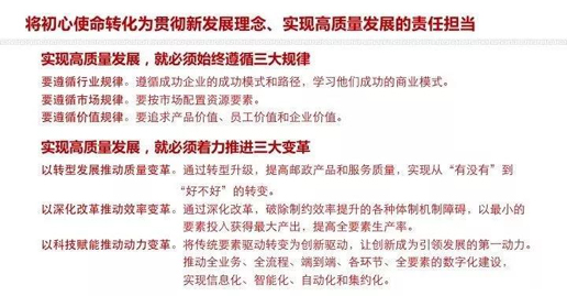 根據(jù)中央要求,結(jié)合郵政實(shí)際,劉愛(ài)力強(qiáng)調(diào)指出,中國(guó)郵政要將“不忘初心、牢記使命”轉(zhuǎn)化為新時(shí)代郵政的責(zé)任擔(dān)當(dāng),切實(shí)做到“六個(gè)轉(zhuǎn)化”。
