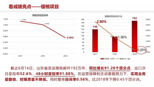 劉愛(ài)力還介紹了集團(tuán)公司自2019年初分階段啟動(dòng)寄遞網(wǎng)提速工作以來(lái),三大重點(diǎn)管控區(qū)域取得的階段性成果,寄遞業(yè)務(wù)時(shí)限質(zhì)量有了大幅提升。