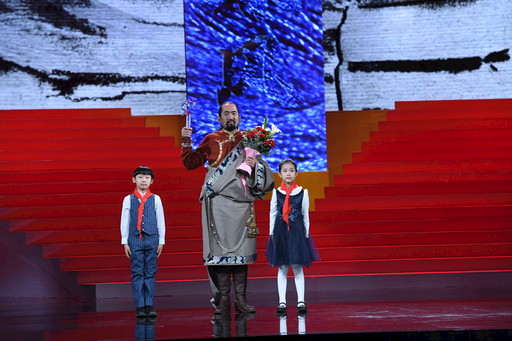 其美多吉舉起“2018年度感動(dòng)中國人物”獎(jiǎng)杯。記者 朱正義 攝