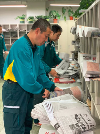東四郵局北新橋投遞部已經(jīng)分好的報紙(央廣記者 馮會玲攝)