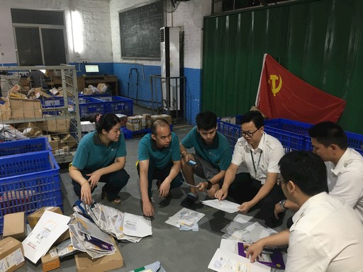 2018年7月1日,帶著這一課題,職能部室黨員劉松釗、曾俊軍以掛靠方式派駐到石牌投遞部黨小組。平日里,他們與攬投員一起上門攬件、打包、裝車,在充分掌握基層網(wǎng)點生產(chǎn)情況的基礎(chǔ)上,提出對大客戶寄遞的輕小件采取直封和集包的建議。