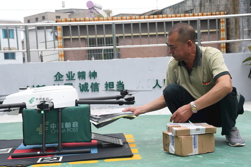 試點(diǎn)無人機(jī)投遞,提高投遞效率。貴州記者 宋嬋娟 攝