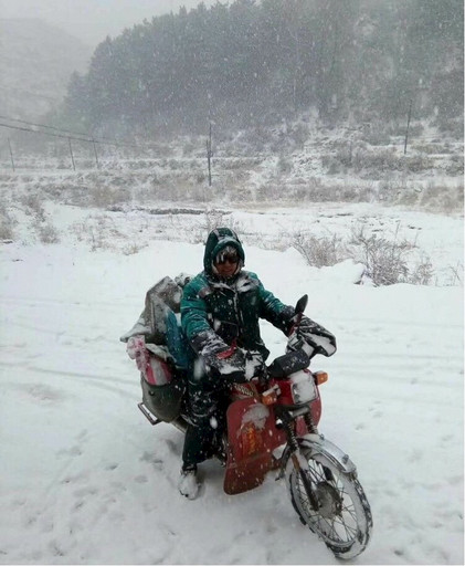 10多年前的孟山鄉(xiāng),條件十分艱苦,環(huán)境十分惡劣。那時(shí)的孟山鄉(xiāng)一帶鮮有橋梁,每次暴雨時(shí)節(jié),郭成明為了不讓用戶的郵件受到損失,每次過河前都將郵件用塑料包好,冒著大雨往返河流15次,將郵件完好無損地交到收件人手中。雖說每次都是有驚無險(xiǎn),但長途的跋涉“危險(xiǎn)”也常伴左右,記得那是2010年冬天的一個(gè)傍晚,天色漸暗,他送完最后一個(gè)郵件想趁著天還沒有全黑趕回家中,可就在出村不遠(yuǎn)的一條羊腸小道上,前方突然出現(xiàn)大片暗冰。他急踩剎車后,摩托車朝著路邊深溝沖了過去。他急忙握緊車把調(diào)轉(zhuǎn)方向,卻又撞向了路邊的山崖,重重地將他摔在了地上。這一次的經(jīng)歷造成了郭成明腿部靜脈曲張、腰椎間盤突出的傷痛,可他仍然堅(jiān)持在這條郵路上跋涉,從來沒有抱怨過。