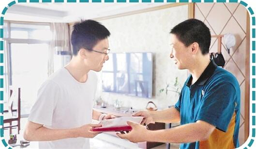 “這幾日,我早上7時(shí)就會(huì)過來準(zhǔn)備收件。暑期錄取通知書多,寄送要求高,要提前準(zhǔn)備,規(guī)劃路線?!倍A遞來兩套工作服,按照約定,我們要跟著他送件一天。