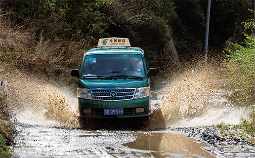 每到雨季,高原牧區(qū)坑坑洼洼的土路就變成了連片的水坑,郵車根本無法擇路而行,隨時(shí)都有可能陷進(jìn)水坑。