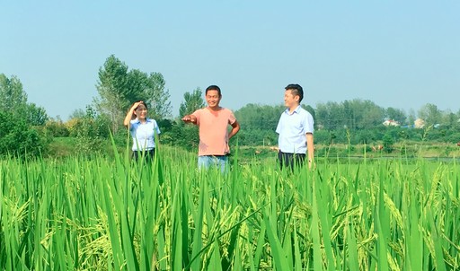 金寨縣支行客戶經(jīng)理在貸前調(diào)查水稻生長情況。