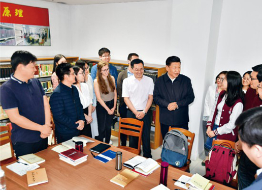 2018年5月2日,中共中央總書(shū)記、國(guó)家主席、中央軍委主席習(xí)近平來(lái)到北京大學(xué)考察。這是習(xí)近平在北京大學(xué)馬克思主義學(xué)院,與正在就“解讀新時(shí)代”進(jìn)行座談交流的中外學(xué)生親切交談。 新華社記者 李濤/攝