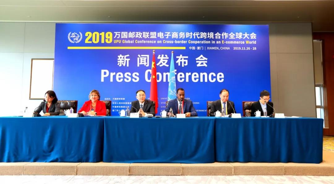 11月26日,萬國郵聯(lián)國際局總局長比沙爾·侯賽因、世界海關(guān)組織守法便利司司長安娜·伊諾霍薩、中國國家郵政局局長馬軍勝、中國郵政集團(tuán)公司副總經(jīng)理張榮林出席萬國郵聯(lián)電子商務(wù)時代跨境合作全球大會新聞發(fā)布會,圍繞增進(jìn)全球郵政、海關(guān)、鐵路、航空和跨境管理機構(gòu)之間的合作,發(fā)展完善全球郵政網(wǎng)絡(luò),促進(jìn)郵政供應(yīng)鏈的安全和便利化,推進(jìn)國際鐵路運郵,推動跨境電商和全球貿(mào)易可持續(xù)發(fā)展等主題向記者進(jìn)行了介紹并回答記者提問。