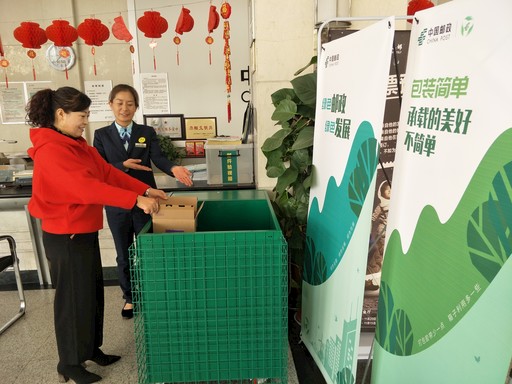 日前,安徽省亳州市郵政分公司在全市郵政網(wǎng)點(diǎn)統(tǒng)一配置了綠色包裝回收箱,以減少用戶對(duì)包裝箱隨手丟棄的現(xiàn)象,使快遞包裝盡可能循環(huán)使用。為深入推進(jìn)綠色郵政建設(shè)行動(dòng),亳州市分公司積極宣傳綠色發(fā)展理念,不斷凝聚環(huán)保共識(shí),扎實(shí)推進(jìn)綠色發(fā)展工作。圖為亳州市分公司芍花路支局營(yíng)業(yè)員在引導(dǎo)客戶將拆開后不用的包裝箱放入回收箱內(nèi)。 □常冠林 攝影報(bào)道