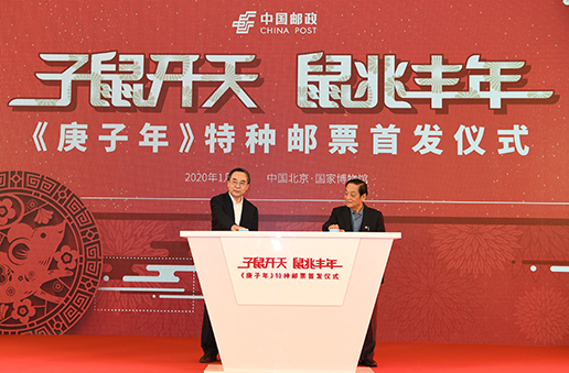 1月5日,《庚子年》特種郵票首發(fā)儀式在中國國家博物館舉行。該套郵票設(shè)計者、著名藝術(shù)家韓美林,中國郵政集團有限公司董事長劉愛力、國家博物館館長王春法等出席儀式。劉愛力與韓美林共同為《庚子年》特種郵票揭幕。