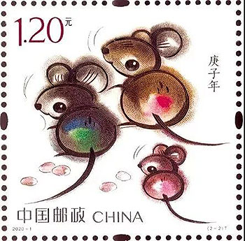 庚子鼠年生肖郵票第一圖名為“子鼠開天”,取自民間傳說“鼠咬天開”,萌動之鼠騰空躍起,咬破混沌,遂成宇宙,寓意國家取得了開天辟地、繼往開來的巨大成就;第二圖為“鼠兆豐年”,三只小鼠一副歡喜自得模樣,寓意闔家歡樂,花生圖案一派豐收景象,寓意2020年五谷豐登、闔家歡樂。畫面運用裝飾小寫意的畫法,結(jié)合傳統(tǒng)國畫的渲染技藝,展現(xiàn)了生肖鼠的可愛萌動,預(yù)示著偉大祖國的繁榮富強。