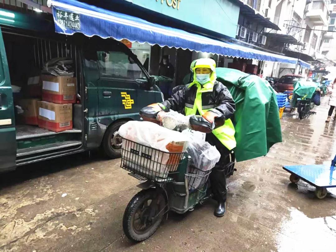 “一配齊”:為所有投遞人員配齊醫(yī)用口罩;“兩配備”:在各攬投部配備手持電子體溫檢測(cè)儀,配備洗手消毒液、84消毒液;“三必須”:攬投人員出班必須佩戴口罩,回班必須對(duì)攬投車輛進(jìn)行消毒,對(duì)攬投員檢測(cè)體溫,投遞郵件因客戶被預(yù)防隔離無法由親屬代收的必須向區(qū)分公司報(bào)告,由各區(qū)分公司報(bào)市分公司匯總后向省分公司報(bào)備,延時(shí)投遞。