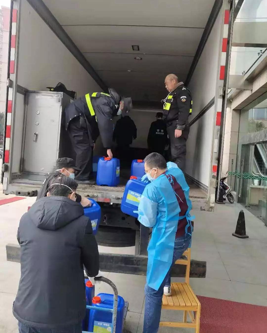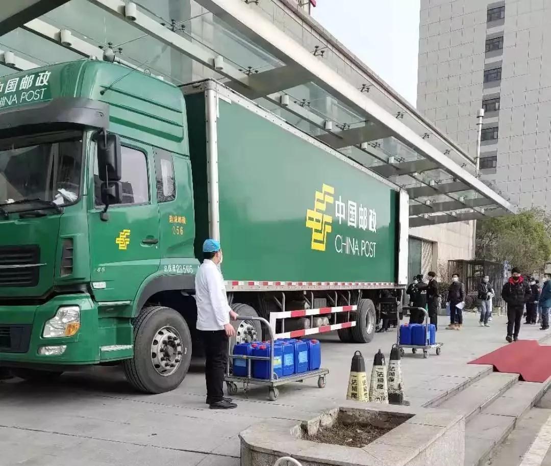 科技公司已經下班,只留下2名員工,阜寧郵政的4名員工就成了主力,大家一起努力,花了3個小時總算將500箱10噸消毒液和一些醫(yī)護用品裝上了車。