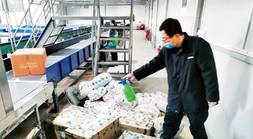圖為聊城市分公司員工給郵件消毒。